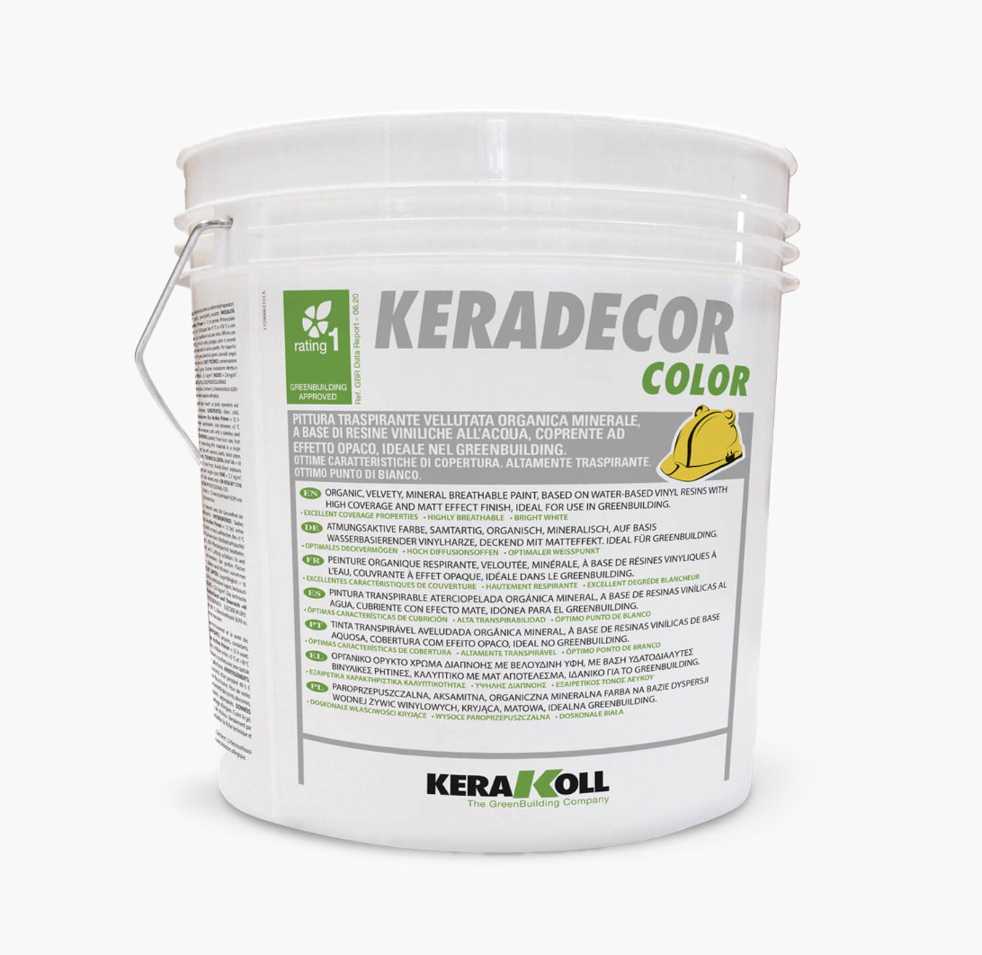 Keradecor Color es altamente transpirable con alto nivel de cobertura, blanco brillante y alta resistencia a la abrasión.
